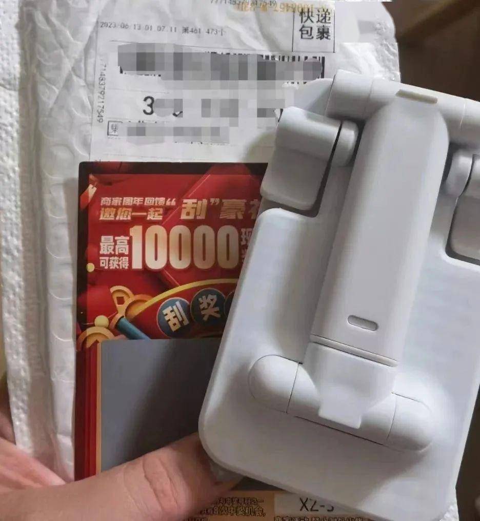 近日,孙女士就收到了这样一个陌生快递,快递盒内有一个手机支架,一份邀请函,和一张带有二维码的刮奖券。