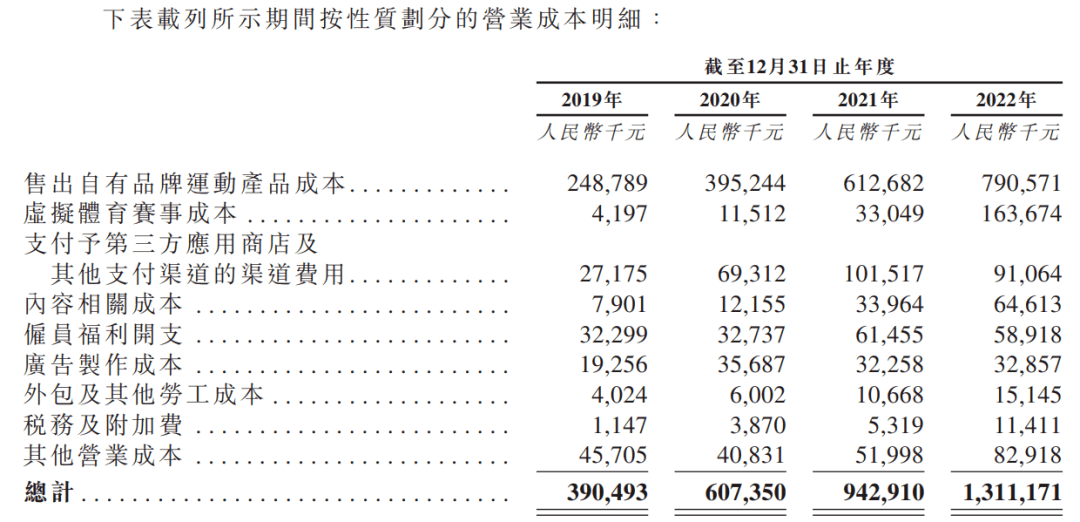 从招股书来看,Keep虚拟体育赛事成本从2019年的419万元上升到了2022年的1.63亿,与此同时,其所属的会员订阅及线上付费内容业务2022年的毛利率低于2021年,招股书中明确提到,原因在于虚拟体育赛事毛利率相对较低。