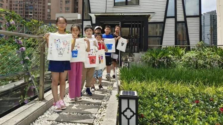在参观环节,复元坊居民区社工带领孩子们前往屋顶再生花园功能区,讲解生态种植园是如何实现雨水收集与光伏板光电转换系统进行灌溉,如何将湿垃圾处理后得到的酵素作为肥料实现“自产自销”等内容。