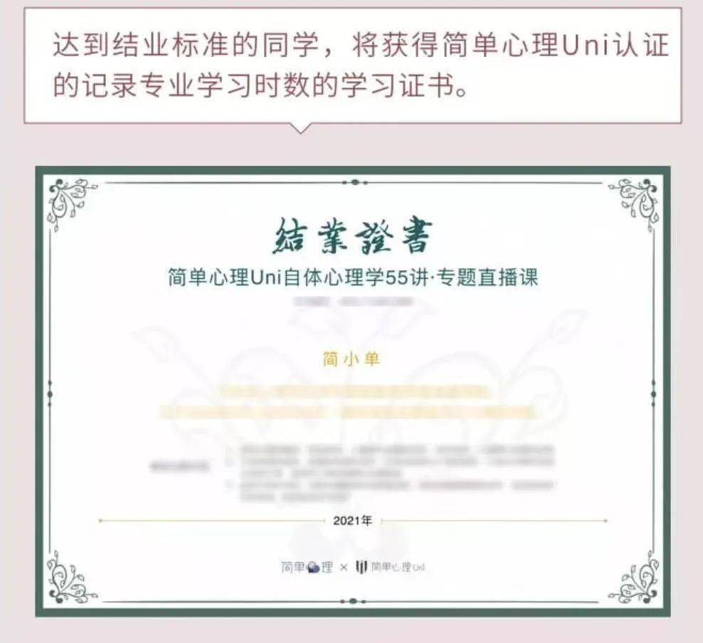 达到结业标准的同学,将获得简单心理Uni认证的记录专业学习时数的学习证书