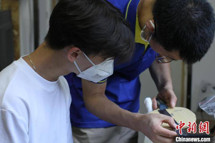 工作室现场,来自芬兰的乒乓球运动员王子昂趁着在成都参加训练的间隙,前来定做球拍底板。通过对其打法特点、持拍方式、胶皮选材、原底板性能和优缺点、新底板拟改进方向等方面加以了解,吴伟已对王子昂旧球拍的结构材质、厚度、重量等基本参数了如指掌。“底板定做的经历将帮助我选对拍、打好球。”共同参与绘制、打磨等制作工序后,初次定做底板的王子昂对这背后的学问很是感慨。他希望未来能用自己的专属底板参加大运会,与优秀的中国选手较量。
