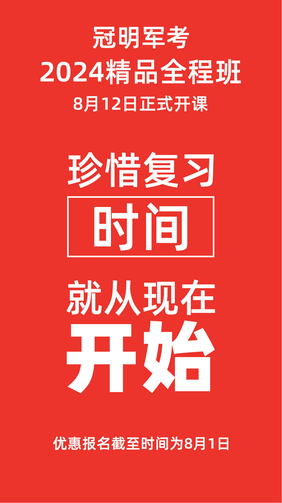 【8月12日】冠明军考2024精品全程班即将开课,既然决定要考军校,反正都要学,为什么不早点开始?把机会掌握在自己手中!