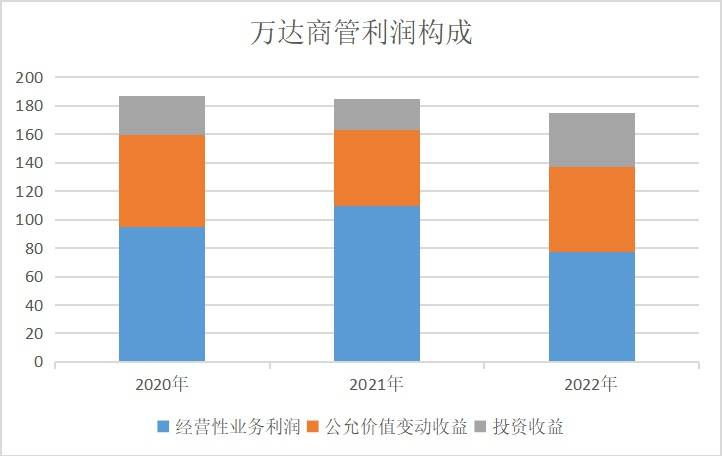 拆分万达商管的利润结构,公允价值变动收益为公司利润的重要组成部分,但万达商管大部分投资性房地产已处于抵质押状态,再融资弹性不大。