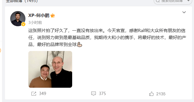 据闻小鹏和大众并非一时起意,而是前者攻坚了很久的项目,如今才有了进展。