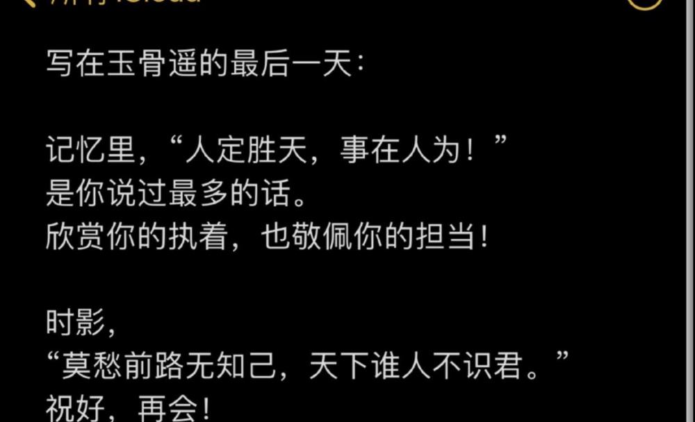 是的,肖战的4次杀青。他们分别是肖战告别角色魏无羡的时候(出自《陈情令》),告别角色顾魏的时候(出自《余生请多指教》),告别角色顾一野的时候(出自《王牌部队》),以及告别角色时影的时候(出自《玉骨遥》)。我们可以先来看一下肖战告别魏无羡时的寄语,内容可谓非常直接了,我们也能够真切的感受到(详细内容可参见配图,全文同);而到了顾魏这里,则省略了大段,只有一句话——老顾,羡慕你的一切;再到了告别角色顾一野时,则写了比较长的一段话,也附赠了一句诗——山回路转不见君,雪上空留马行处;最后,到了时影这里,则文字上点到为止,变得比较内敛——“莫愁前路无知己,天下谁人不识君”。