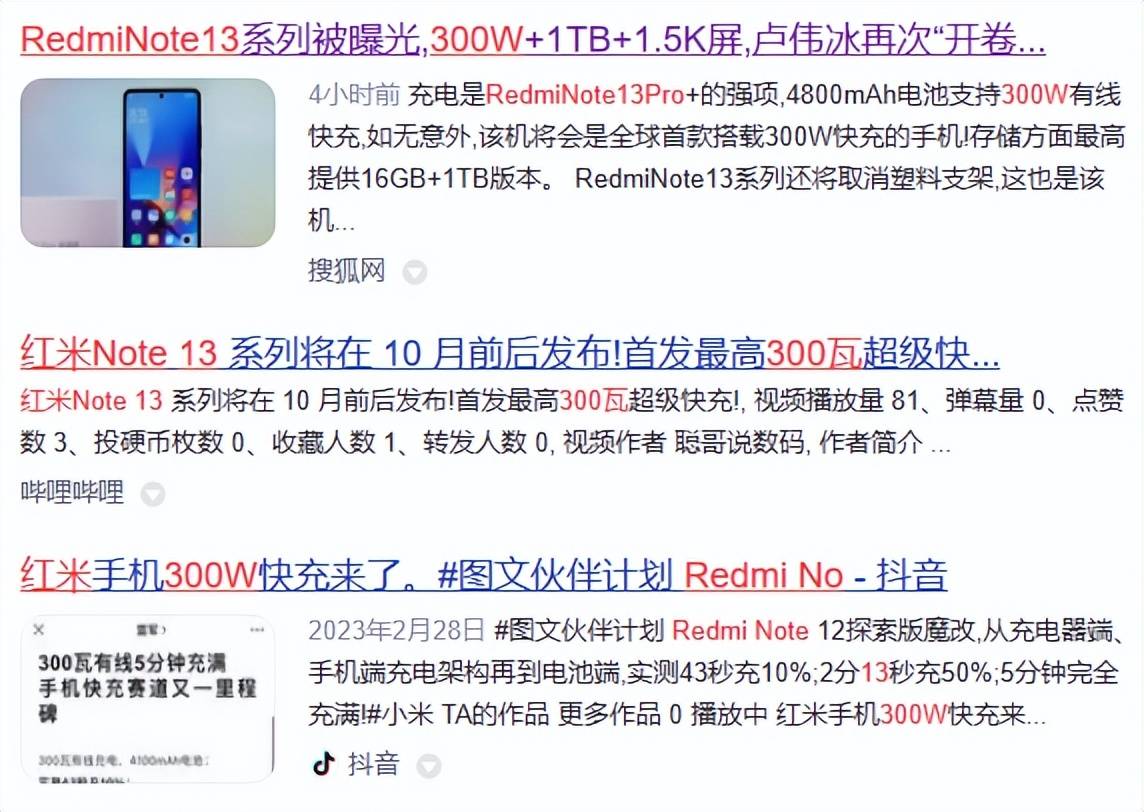 国产厂商的快充,大多能上到 100W,个别“激进”的,例如不久前被曝光的红米 Note 13 Pro,甚至能上到 300W。