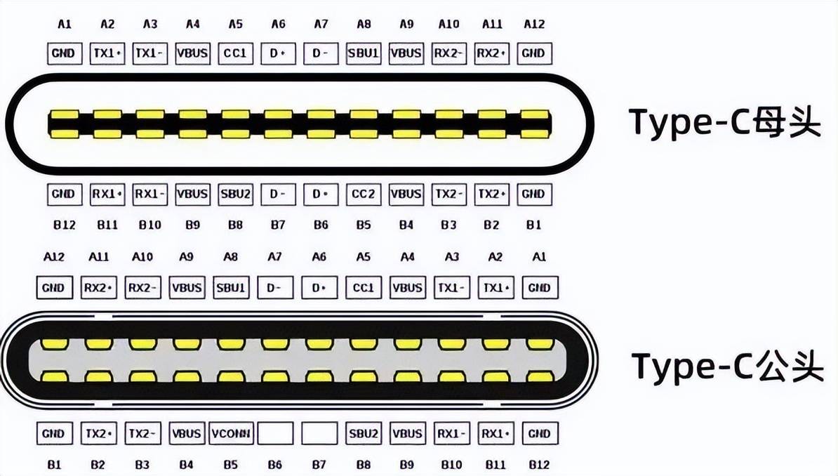 相比之下,USB-C 接口有 5 对供电触点,除去给 Emark 芯片供电的一对触点,还有 4 对触点可以用来供电,给快充留下充足空间。