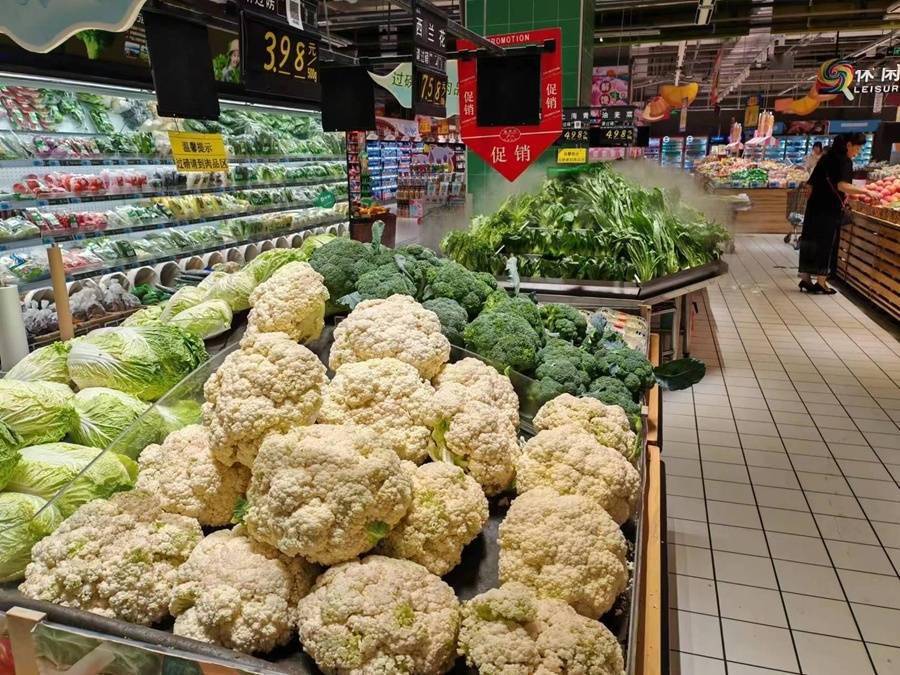 泉州市温陵路大润发超市生鲜区内蔬菜、肉品等农副产品种类繁多,数量充足。泉州市商务局供图