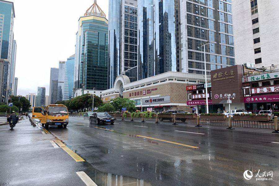 7月29日下午,福州五四路路面积水基本排除。人民网 焦艳摄