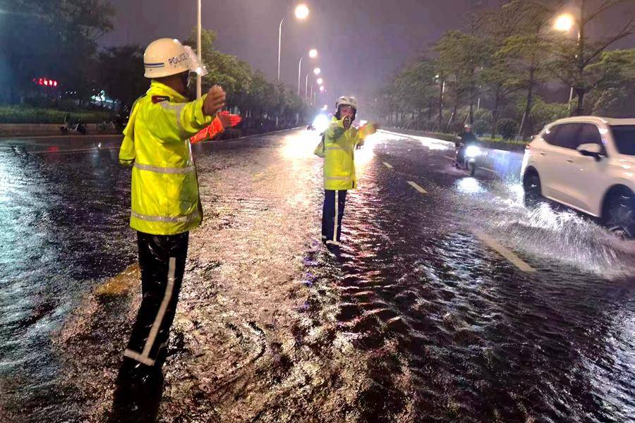 交警部门持续疏导积水路段交通。福州市公安局交警支队供图