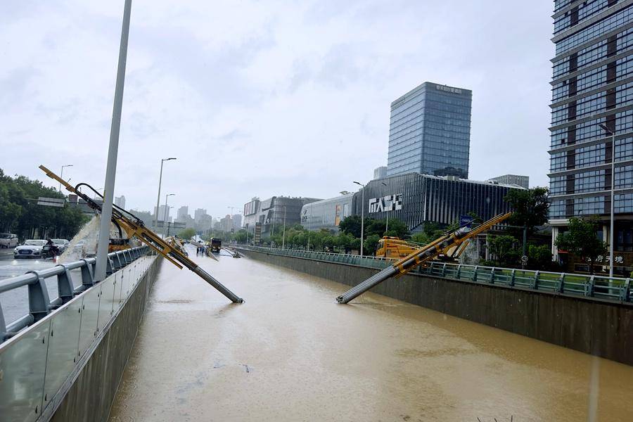 福州市城市排水有限公司用大型设备进行下穿通道排水作业。福州市城市排水有限公司供图