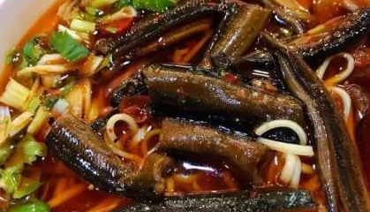 以至于这家苍蝇小馆,虽然店内没有空调,看起来也不是那么干净,但很多顾客还是愿意在面馆内边流汗边吃面。而且像在这里吃面,一般都得排队半小时才能上面,排到后面的只能第二天赶早。后来饮食君才知道这家苍蝇小馆的非比寻常,店内的主食是用“黄鳝”制成的鳝鱼面,而且在分量上,也跟70多岁的老板一样实在。