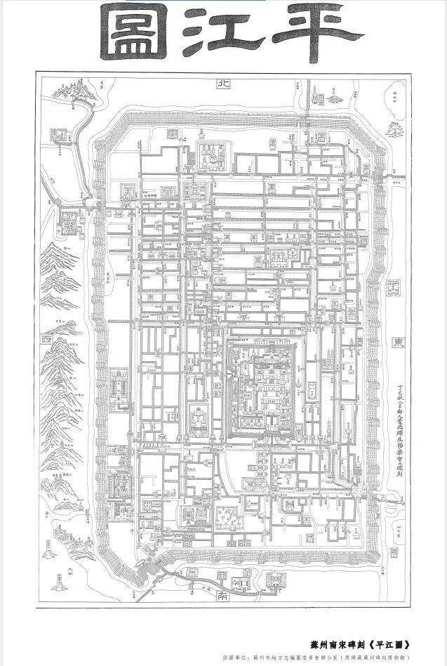 《平江图》是我国古代留存至今最早、最详细、最完整的城市平面图。《平江图》碑高2.79米、宽1.38米。吕梃、张允成、张允迪镌。据考证为南宋绍定二年(1229)立。