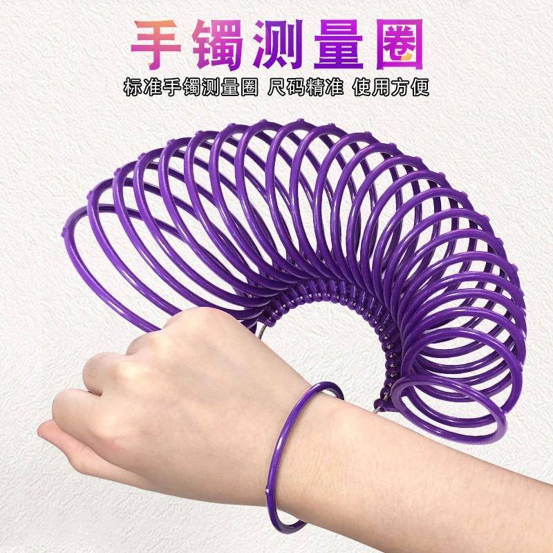 还有就是那种定制宽版的戒指的时候,尽量也要放大一个号,因为有的时候戒指太宽了,手指是不好活动的,这就是真真实实的干货,还有另外一种就是图片中这种测量手镯圈口的小物件,这种就是直接套在手上,上面有对应的圈口号,和我们传统的圈口是有一点不一样的,一定要看仔细。