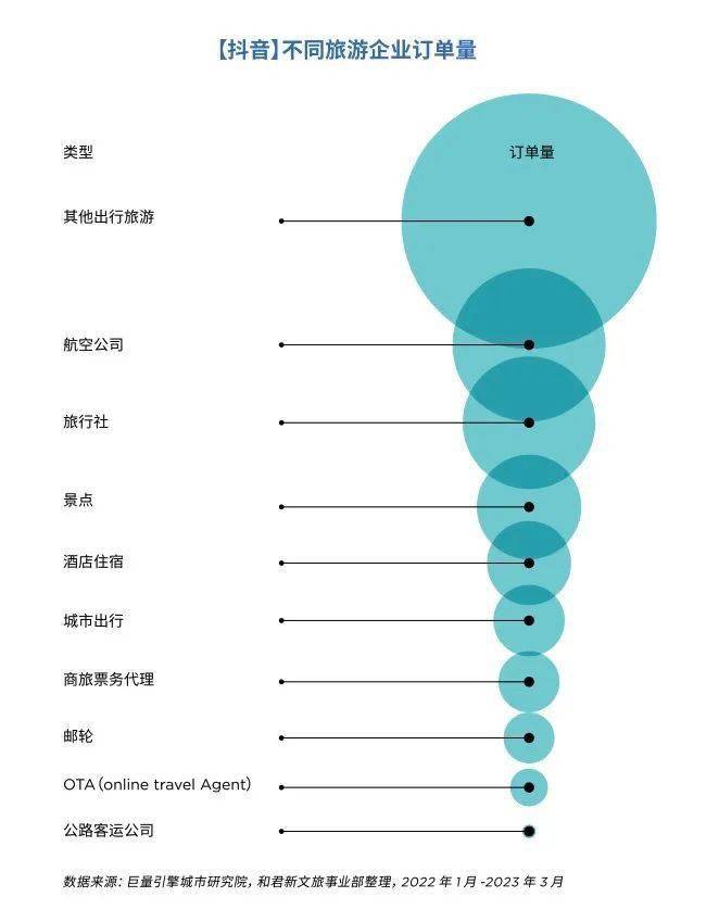 《2023抖音旅游行业白皮书》显示,截至今年3月底,景点、酒店住宿、航空公司、OTA、旅行社等各类旅游企业账号数量,在抖音上平均增长了20%,其中以酒店住宿、商旅票务、旅游景点的增长最为明显,分别为61.5%、46.0%、35.5%。同时,与去年一季度相比,有关旅游的内容分享量增长了62%。