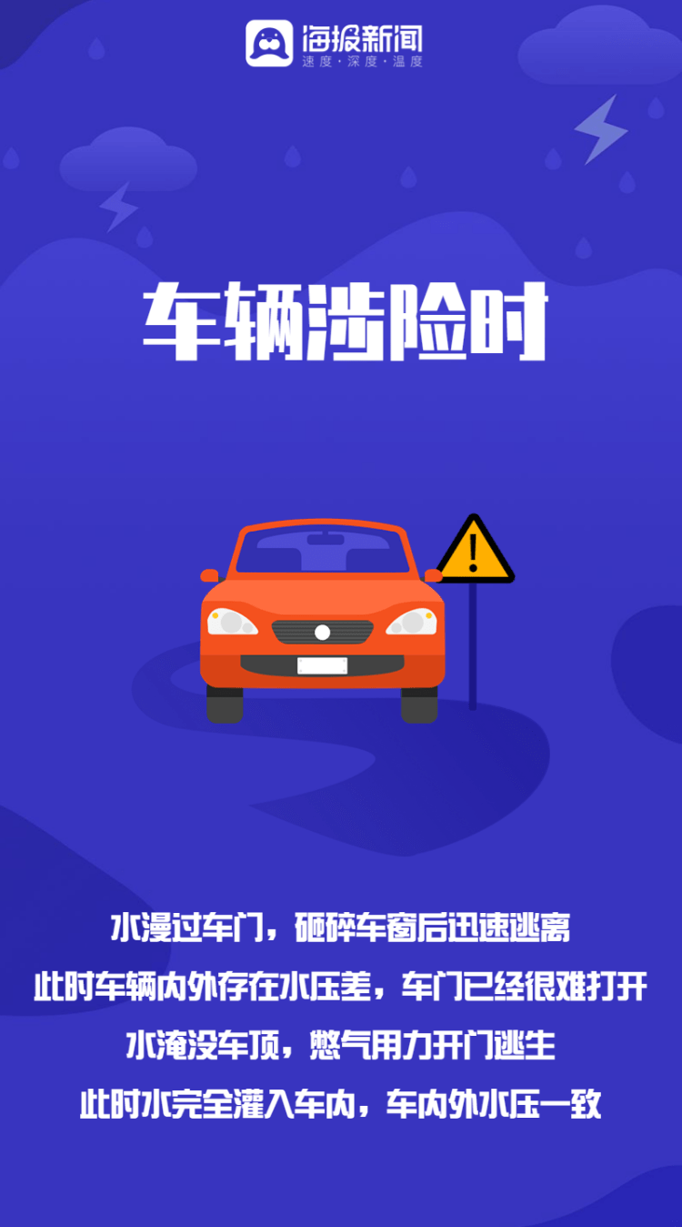 原标题:海报图品|暴雨中车辆涉水如何自救