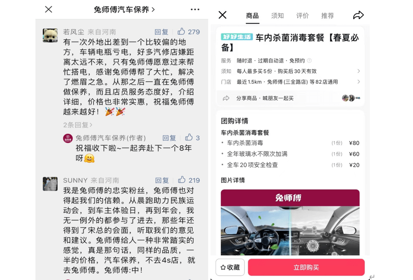无论是赞扬还是小小的批评,都能看出留言的车主真的很喜欢兔师傅。兔师傅也是美团和抖音在该类目的KA客户,一直都保持良好的合作。