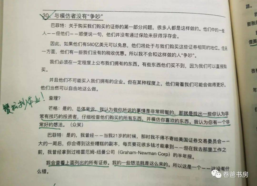 第一本,是《伯克希尔股东大会问答》 。2009年篇,会上,有人提问对于别人抄伯克希尔作业的看法。
