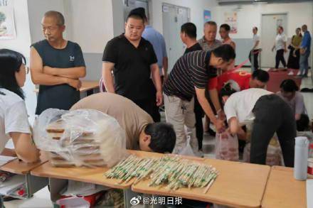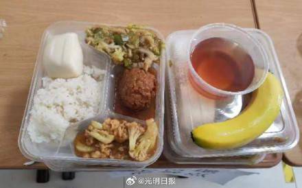 天津市武清区职业教育中心是此次天津市武清区永定河泛区转移居民的安置点,截至8月1日中午12时,安置大黄堡镇和黄花店镇内居住居民557人,所有生活费用由政府承担。图为今日午餐。(光明日报全媒体记者刘茜见习记者王晓飞)