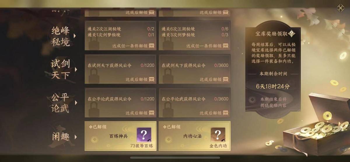真正宠玩家的游戏,已经学会运用多种途径解决玩家头疼的肝度问题!为了进一步满足玩家的摆烂心理,《逆水寒》手游新版本又推出了一个秘境宝库,只要大家随便完成两个任务,每周保底拿到一件毕业装备和金色内功,让你提升实力无压力。