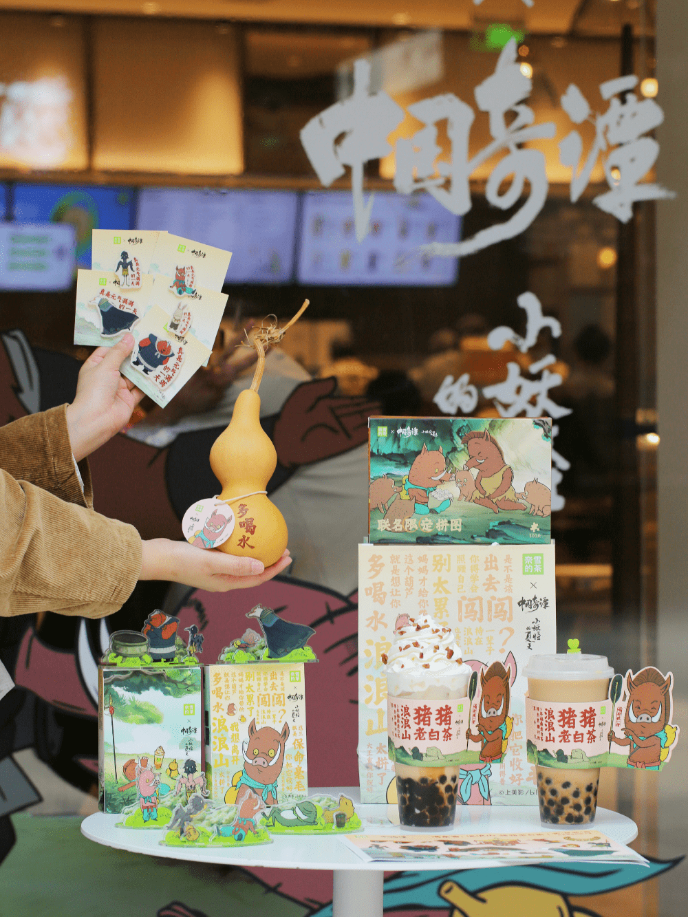 据悉, “小猪妖”联名产品上线当日销量突破10万杯,成为门店销冠,衍生周边也一度脱销。