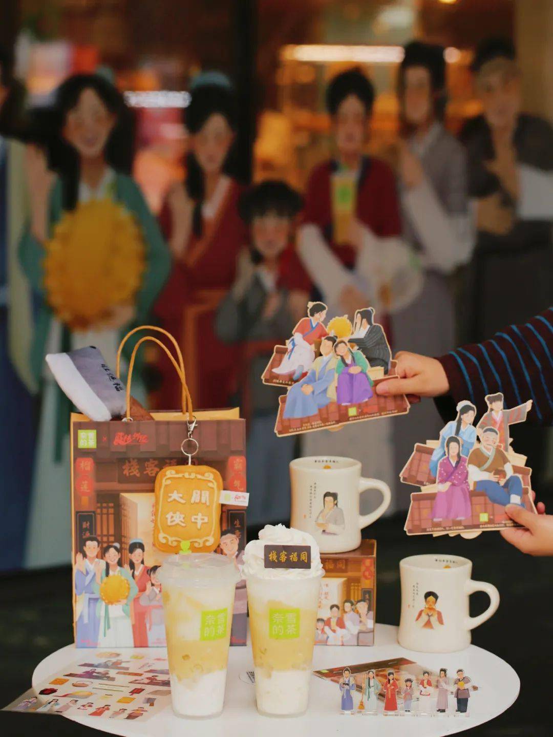本次合作规模堪称浩大,在全国装置30+主题门店,定制了4款杯套、玩偶、马克杯、贴纸,以及同福客栈全员在内的亚克力人形立牌,还举办了一系列台词金句活动,风靡剧迷群体。