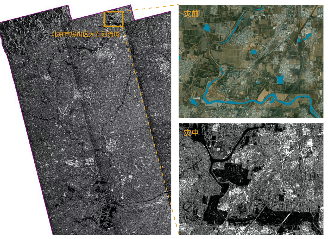 卫星影像表明,受上游洪水过境影响,涿州市河道行洪和城市内涝风险加剧,防汛形势十分严峻。境内北拒马河、小清河、白沟河等多条河流流量增大。而另一张网上流传的由我国高分三号卫星于8月1日早上拍摄的卫星图像显示,随着上游降雨形成的洪水持续下泄,涿州市区三面已被洪水包围。另据涿州市防汛抗旱指挥部消息,目前,小清河分洪区、兰沟洼蓄滞洪区已相继启动。