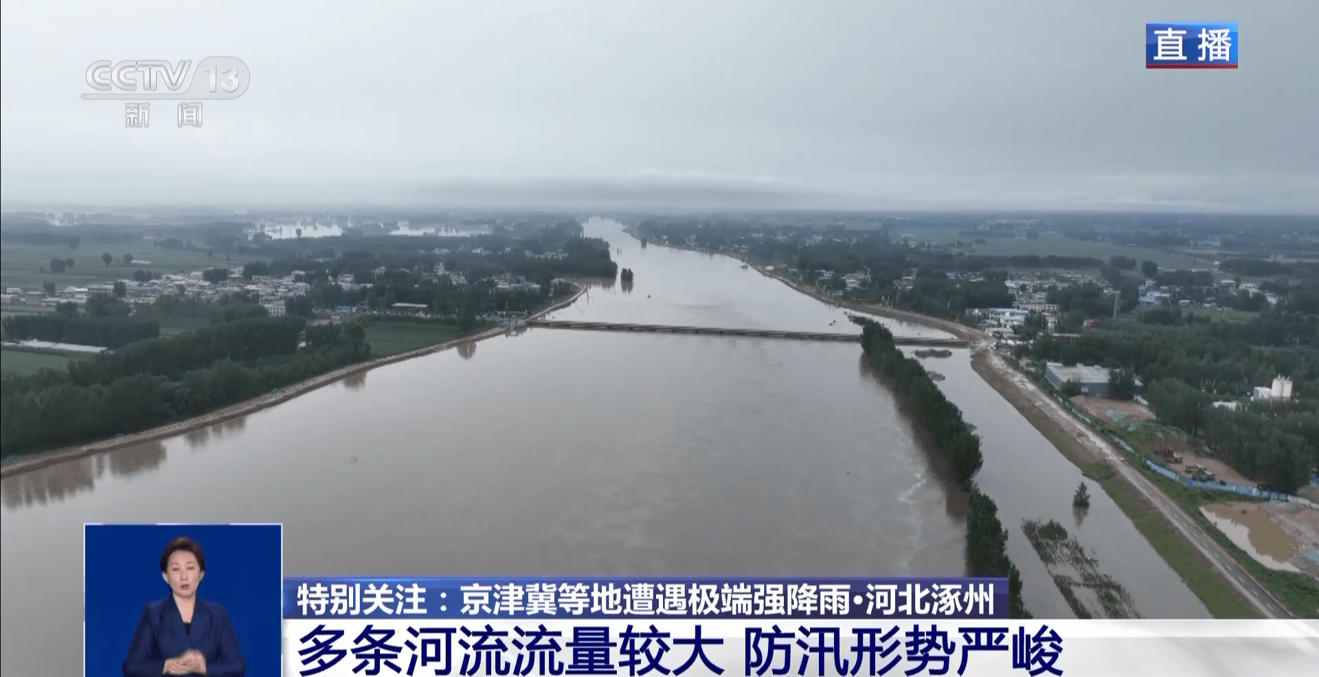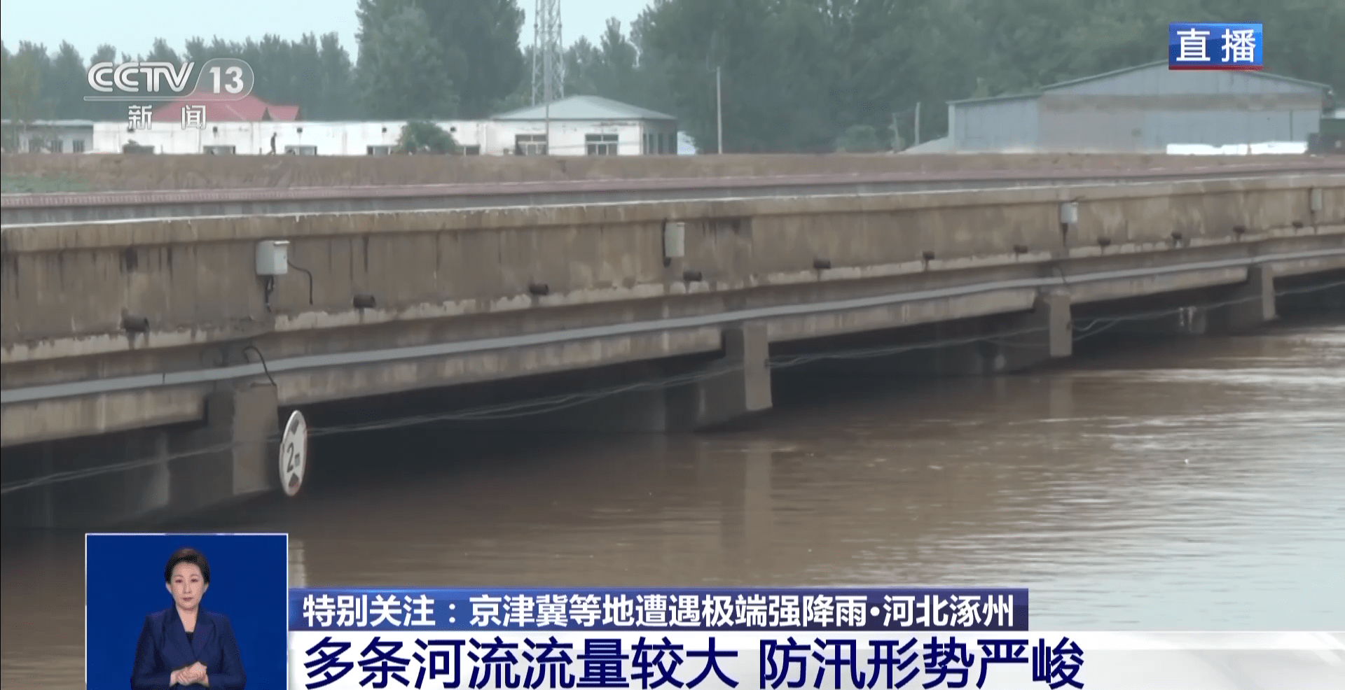总台记者 张婉莹:我现在所在的位置是河北省保定涿州市,我们可以看到,大桥下面的这条河流就是白沟河,这是一条重要的行洪河道。据我们了解,目前白沟河的水位相比于往日有了明显上涨,并且还在持续上升。