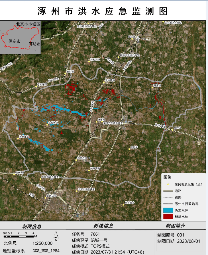 “涪城一号”卫星涿州市洪水应急监测图 20230731