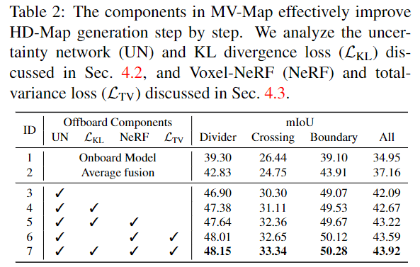 MV-Map组件。我们在下表2中量化了每个非车载模块的改进。