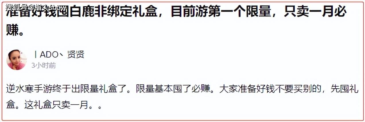 在抖音等平台上,关于《逆水寒》手游的内容也层出不穷,而且极为受关注。这代表着游戏将有源源不断的新人涌入,而这个时候,起售价低、性价比高而且是首款限时限量礼盒的“灵鹿”时装,其未来升值的可能性无疑就变得超级高了。