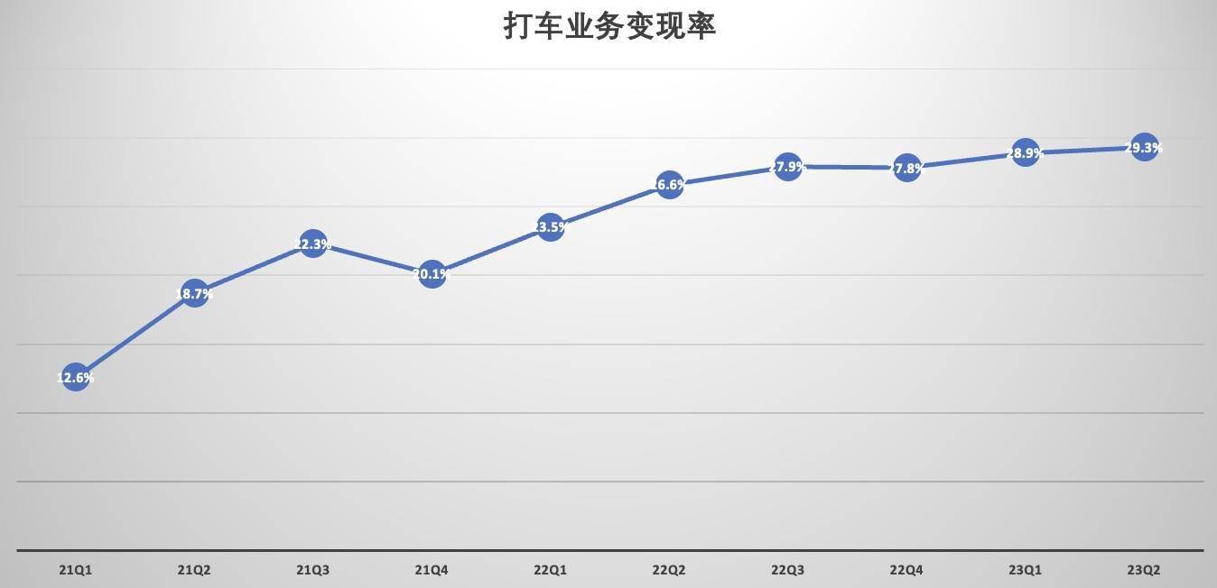 值得一提的是,本季度Uber打车业务营收增速明显高于订单额增速,说明Uber打车业务变现率在持续提升。数据显示,Uber打车业务二季度变现率为29.3%,高于上年同期的26.6%和上一季度28.9%。