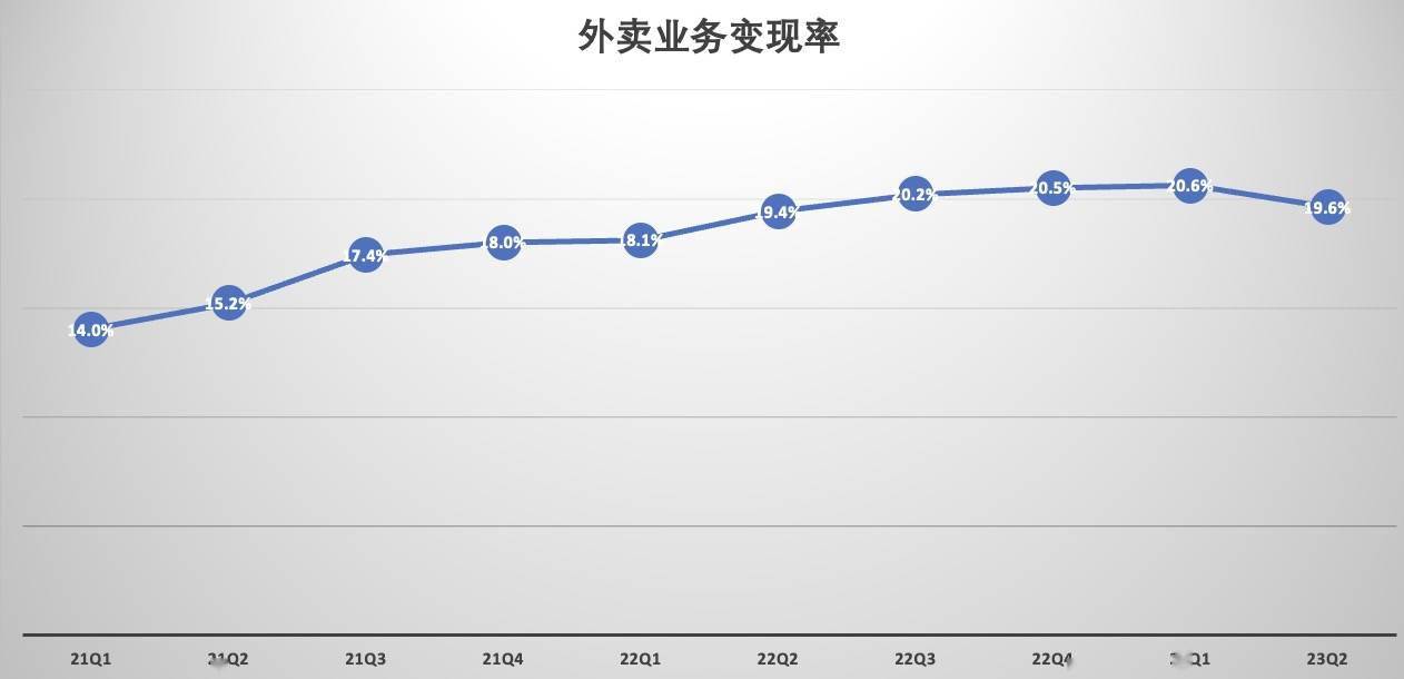 数据显示,Uber二季度外卖业务收入30.57亿美元,与上一季度30.93亿美元相比,减少1.2%。自2022年Q1起,打车业务取代外卖业务,成为Uber最大收入来源。由于外卖业务需求放缓,本季度外卖业务订单金额同比增长12.4%至156亿美元,变现率从上一季度的20.6%下降至本季度的19.6%。