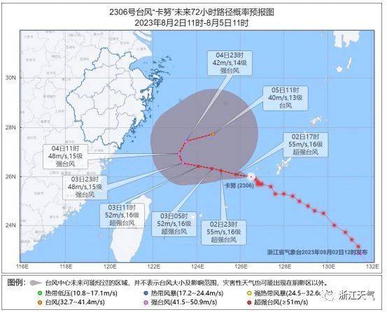 对于它接下来的路径,省气象台研判,“卡努”最大可能于3日夜里至4日上午在浙江南部近海转向东北方向移动,但仍不排除紧擦浙江省沿海北上或登陆浙江省的可能性。