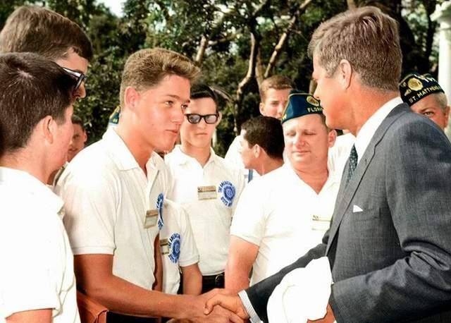 1963年,一次偶然的机会,成绩优异的克林顿参加了美国军团举办的夏令营活动。在白宫,少年克林顿获得时任美国总统的肯尼迪接见并且握手。