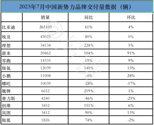 值得注意的是,在7月中国新势力交付量榜单中,多家交付量创历史新高,理想月交付量达3.4万辆, 蔚来首次月交付超过2万辆,小鹏时隔六个月再次过万,交付1.1万辆。