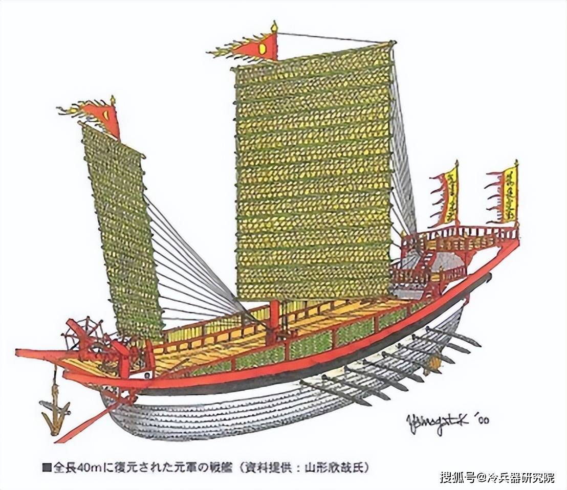▲日本学者复原的元军战船图(实际上的元军战船可能不这样)