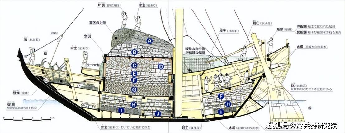 相比之下元代战船就要成熟得多,采用平接结构的船体,水密隔舱,大型硬帆,并且船上很可能装备有抛石机,甚至是火铳。考虑到元军两次入侵都是在13世纪末,因此预计当时的日本水军应该装备的依然主要是各种的小型甚至微型的“准构造船”,很可能像前面提到的“海王”号这样体量的船只都算是大型战船了。