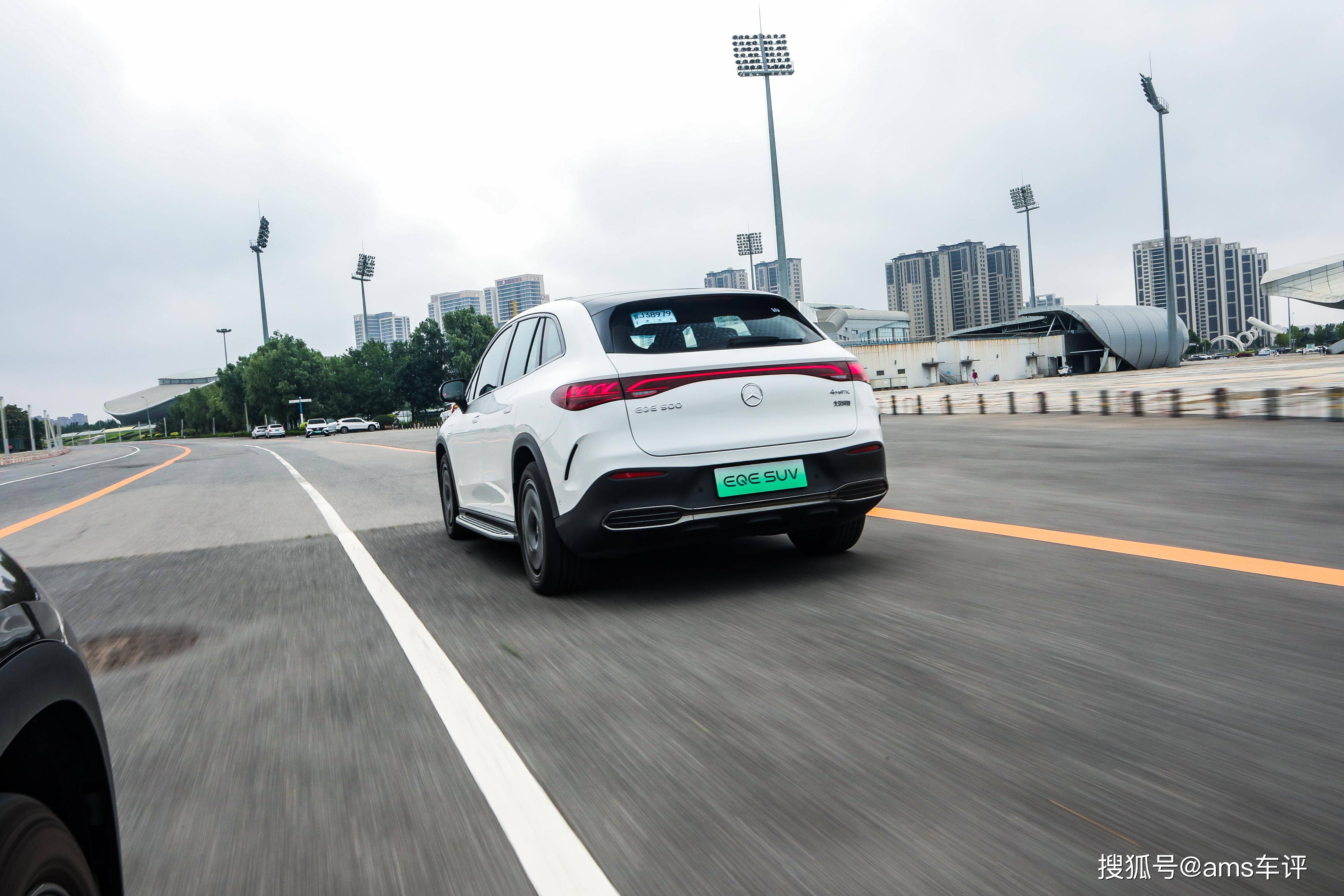 此前试驾EQS给我留下了舒适、安静的印象,这次驾驶EQE SUV在我看来它依然传承这一优点。悬架对于路感有一定保留,同时在面对较大的坑洼和减速带时,悬架也能有效过滤颠簸,加上舒适的座椅,坐在车内非常惬意。但切换到运动模式后,车辆侧向支撑更强,在法规允许的情况下玩一下也是可以的。