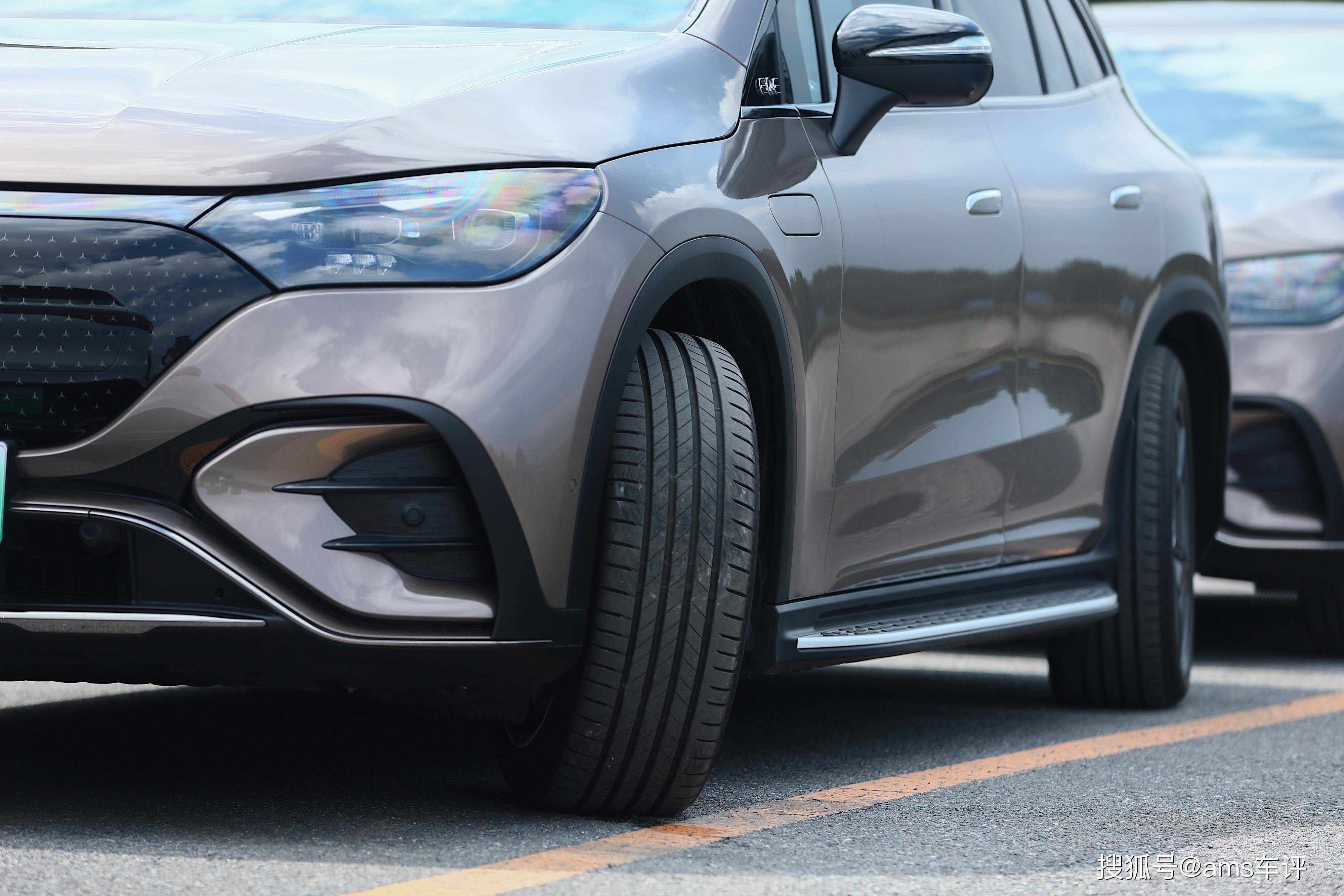 细节上,车辆增加了上下车踏板,但实际使用效果,稍显一般。另外,试驾车这套低风阻轮圈不仅有质感还兼顾减小风阻,真的比某些电动车加个塑料盖子强太多了。尾部同样传承EQ家族设计,圆润、平滑,非常地耐看。