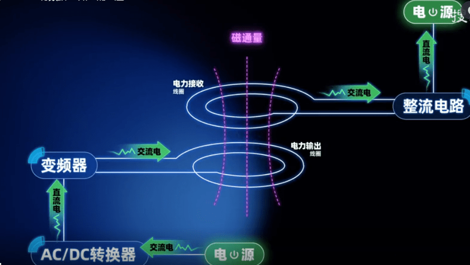 和有线充电一样,通过无线充电器的交流电也需要经过转化器、变频器等一系列电子器件的转化,最终输出特定电压与频率的直流电,供设备的电池使用。