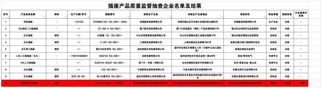 排插是每个家庭都必备的电器设备,其安全性极为重要。一旦发生意外,会给消费者的财产和生命安全带来直接威胁。因此,无锡市市场监督管理局在近期对插座产品进行了监督抽查,具体结果如下。