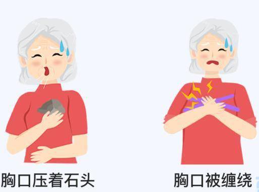 这种胸痛、胸闷常被描述为绞痛、压榨痛、紧缩感。像胸口放了块大石、或用胶带缠了几圈。还常伴有莫名的恐惧、焦虑感。