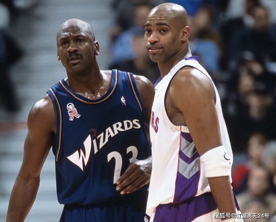 卡特是麦迪的表哥,也是乔丹在北卡的学弟,卡特和乔丹可以说是NBA的“两代飞人”,可惜的是两人生涯过程中一共只交手了4次,卡特是“四大分卫”中与乔丹在NBA较量次数最少的那个。不过,第一次遇上乔丹时的得分卡特是“四大分卫”里最高的,他砍下了23分,高过了乔丹的21分,不过乔丹帮助球队带走了比赛胜利。2002-03赛季卡特带着猛龙两次对上乔丹所在的奇才完全没留面子,此时的乔丹也显得有些力不从心了,卡特两场比赛一次得到18分,一次独揽24分,还收获了3篮板3助攻6抢断,乔丹则是一次8分一次4分,4场与卡特所在的球队的比赛中,乔丹场均能够得到14分4.3篮板2.8助攻1.5抢断,但依然取得了2胜2负的战绩,胜率不落下风。