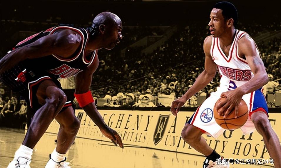 不过,艾弗森可不是轻易服输的球员,即便对面的是乔丹,第二次对战乔丹,艾弗森轰下了32分,接着是1997年3月13日的第三次较量,那个经典的晃过乔丹中距离出手打中的镜头就是出自这场比赛,从进联盟时,外界或许有不少声音质疑艾弗森,但借着晃过乔丹的镜头,更多的球迷被艾弗森征服,当时的新人小个子后卫艾弗森对战乔丹的表现可谓非常惊艳,在那场比赛里,艾弗森砍下了37分,乔丹则是23分,1996-97赛季常规赛最后一次艾弗森对战乔丹,艾弗森狂轰44分,进攻端风头强劲,乔丹得到了30分。在“四大分卫”当中,艾弗森生涯过程中与乔丹交手的次数是最多的,达到了13次,艾弗森的76人赢了6次,乔丹先后在效力公牛和奇才期间都跟艾弗森有交手,一共赢了7次,对战艾弗森的13场比赛,乔丹的场均数据为23.5分5.4篮板3.8助攻2.5抢断。