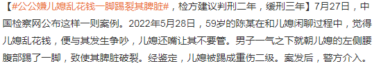 这一脚可不得了,直接把儿媳踢成脾脏破裂,重伤二级。