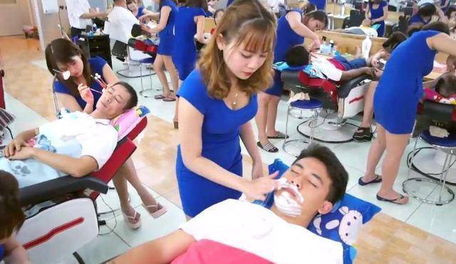 来服务的美女也不只是一个,有人为了按摩脸部,左右两侧都有人为你按摩手臂或者腿部等等。他们还会帮你修剪指甲,服务非常贴心。有这么多美女在身边为你服务,肯定很多男性游客非常喜欢的。在国内的理发店,一般是没有这样的服务的。