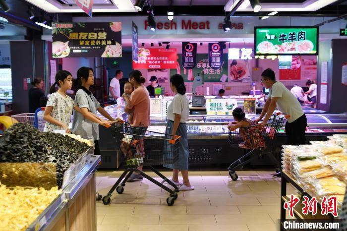 5日,涿州市区一家大型连锁超市内,胡萝卜、南瓜、茄子、苹果等蔬果码放得整整齐齐,日常生活用品等货物装满了货架。顾客三五成群穿梭其间,不少是带着孩子来的。