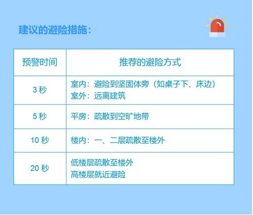 在收到地震预警后的短暂时间窗口内,我们究竟可以做些什么?成都高新减灾研究所给出的逃生时间表供参考:
