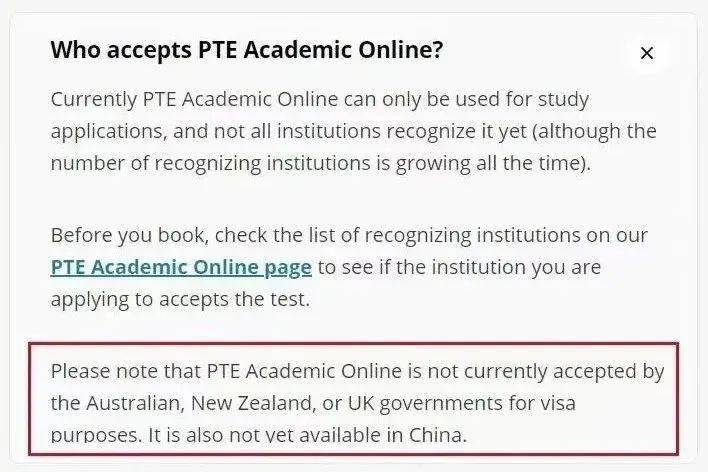 7月23日最新消息显示, 英国移民局不再接受PTE online作为办理英国签证的语言成绩证明。